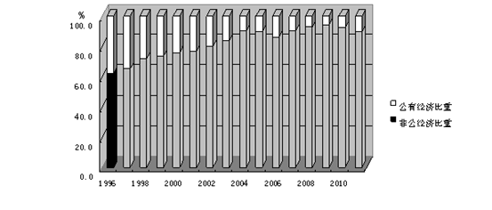 图 2 1996年 ~2011年重庆非公制企业零售额占社会消费品零售总额比重