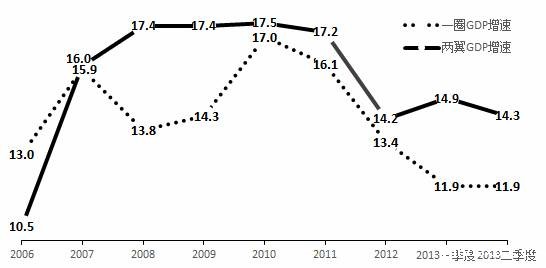 图 2: 2006年以来“一圈”和“两翼” GDP增速