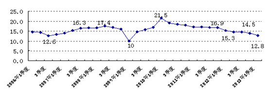 图 1 2006-2013 年季度库区 GDP累计增速