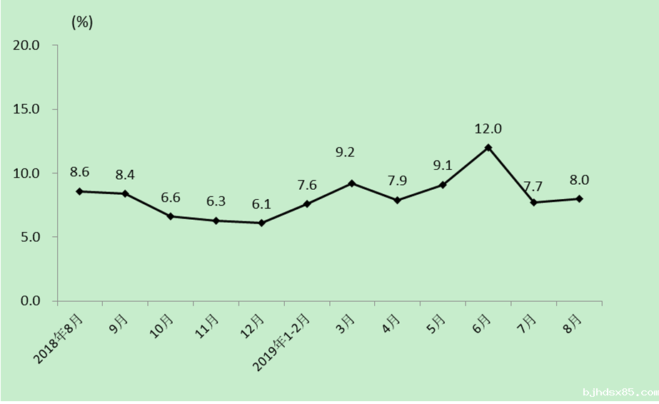 2019年1-8月份重庆社会消费品零售总额增长8.6%