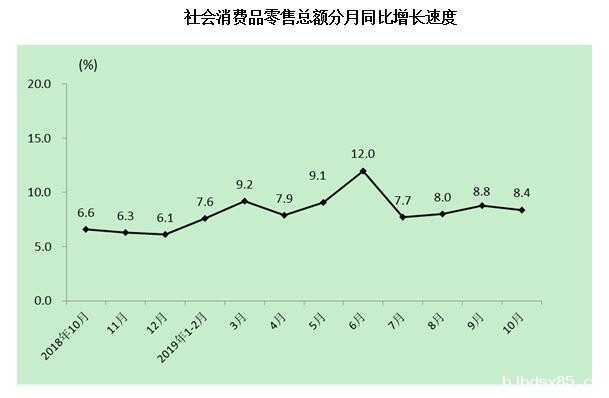 2019年1-10月份重庆社会消费品零售总额增长8.6%