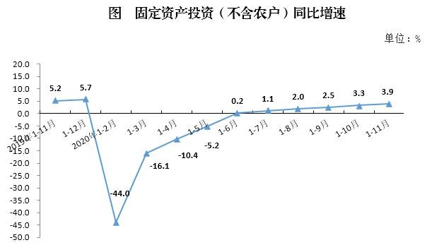 2020年1-11月份,全市固定资产投资(不含农户)同比增长3.9%。其中,民间固定资产投资增长0.8%。