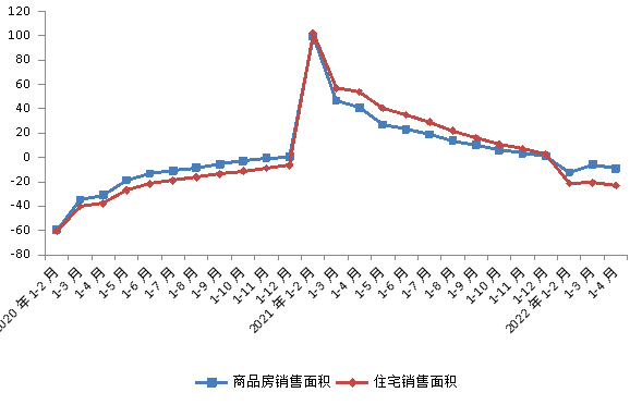 1-4月,房地产开发企业房屋施工面积21424.18万平方米,同比下降10.8%。其中,住宅施工面积14222.95万平方米,同比下降10.6%。房屋新开工面积855.18万平方米,同比下降46.1%。其中,住宅新开工面积632.35万平方米,下降42.5%。房屋竣工面积666.50万平方米,同比下降52.3%。其中,住宅竣工面积454.47万平方米,同比下降51.2%。