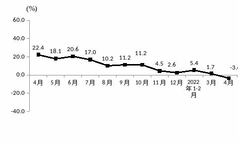 2022年1-4月,全市实现社会消费品零售总额4536.59亿元,同比名义增长2.4%(扣除价格因素,实际增长0.3%,以下均为名义增长)。