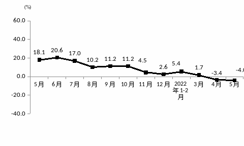 2022年1-5月,全市实现社会消费品零售总额5698.18亿元,同比名义增长1.0%(扣除价格因素,实际下降1.3%,以下均为名义增长)。
