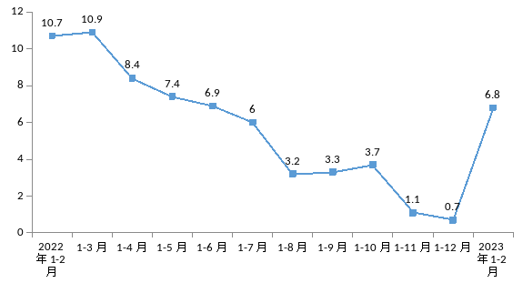 2023年1-2月份,全市固定资产投资(不含农户)同比增长6.8%。其中,民间固定资产投资同比下降2.4%。