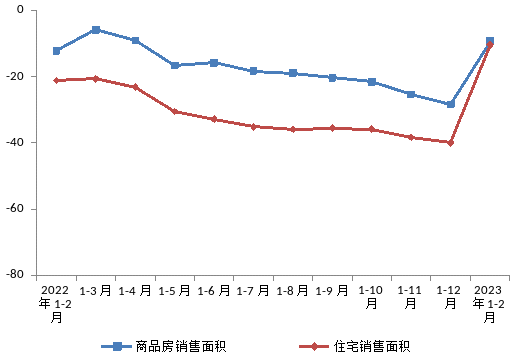 1-2月,全市商品房销售面积511.41万平方米,同比下降9.3%。其中,住宅销售面积下降10.4%,办公楼销售面积下降41.1%,商业营业用房销售面积下降21.3%。