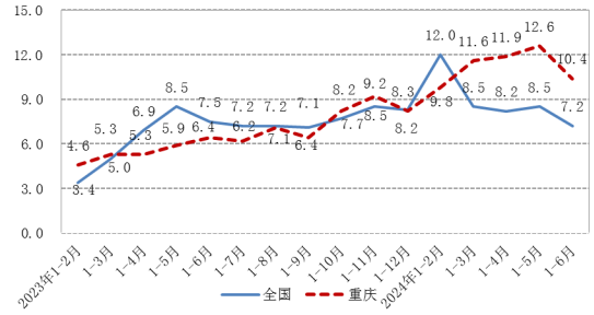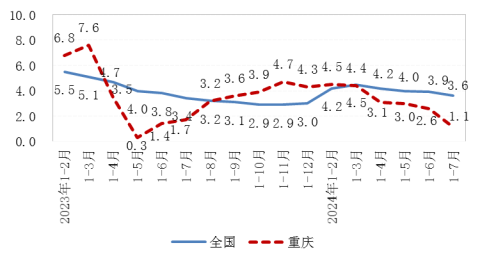 分产业看,汽车产业近期虽然受到燃油车减产的影响,但在赛力斯等新能源车企的拉动下仍保持高速增长,1—7月增加值增长28.5%,比1—6月回落1.8个百分点,拉动全市规上工业增长4.8个百分点。电子产业增长3.2%,提高0.1个百分点;摩托车产业增长4.8%,提高1.3个百分点;消费品产业增长6.2%,提高0.1个百分点;装备产业增长0.7%,提高1.5个百分点。材料产业增长4.9%,能源工业增长6.4%,分别回落0.6和0.9个百分点。医药产业下降2.3%,降幅收窄0.1个百分点。