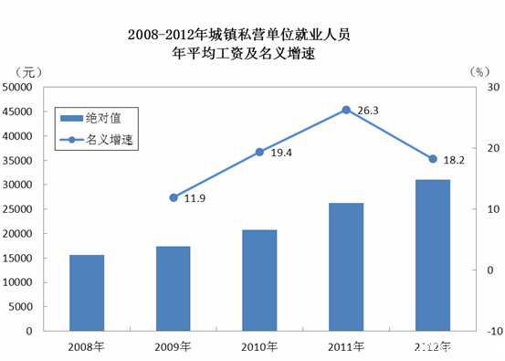 表2:2012年城镇私营单位分行业就业人员年平均工资