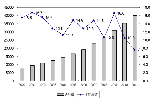 2011年全市城镇非私营单位在岗职工年平均工资为40042元,与2010年的35326元相比,增加了4716元,同比名义增长13.3%,增幅回落0.8个百分点。扣除物价因素,2011年全市城镇非私营单位在岗职工年平均工资实际增长7.6%。