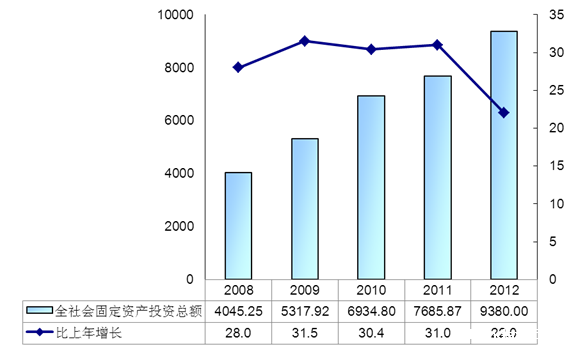 图 4 2008- 2012年固定资产投资总额及其增长速度