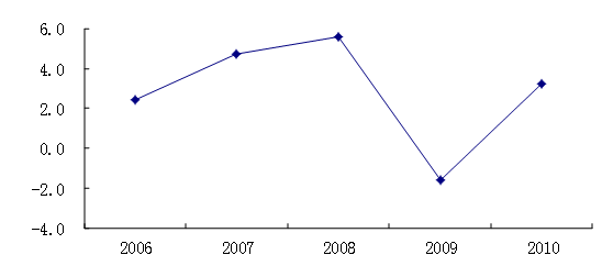 图2 “十一五”期间城市居民消费价格涨跌幅度