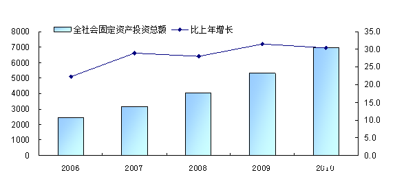 全年全社会固定资产投资6934.80亿元,比上年增长30.4%。其中,基础设施建设投资1911.45亿元,增长23.9%;城镇投资6342.98亿元,增长27.9%;农村投资591.81亿元,增长64.8%。