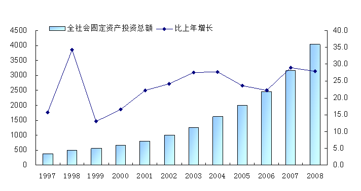 图4 直辖以来全社会固定资产投资总额及其增长速度