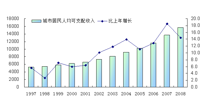 [5]城镇居民人均可支配收入是指在一定时期内(一般为一年)城镇居民家庭成员得到的可用于最终消费支出和其它非义务性支出以及储蓄的总和,即城镇居民家庭或以用来自由支配的收入。是全面反映城镇居民收入水平和结构变化的最主要指标。重庆市城镇居民人均可支配收入从2007年开始调查统计,覆盖全市城镇居民;城市居民人均可支配收入调查范围只包括主城区。